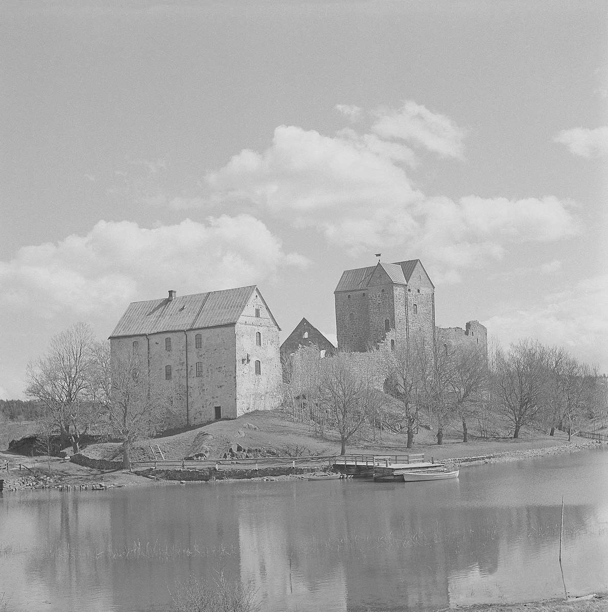 Kastelholman linna Ahvenanmaalla, kuvattu vuonna 1944. Kuva: sot. virk. Eino Nurmi, SA-kuva, Public Domain.