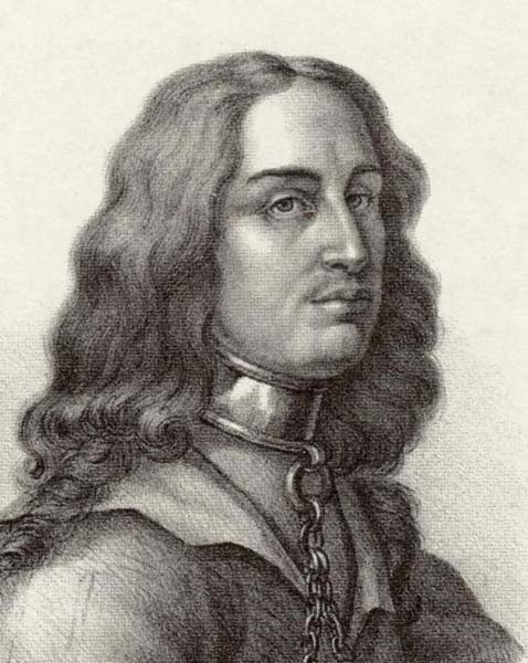Kustaa Eerikinpoika Vaasa (1568–1607) vuonna 1880 tehdyssä piirroksessa. Sen pohjana on Abraham Wuchtersin maalaus 1600-luvulta, joka saattoi esittää Kuustaa Eerikinpoikaa. Public Domain.