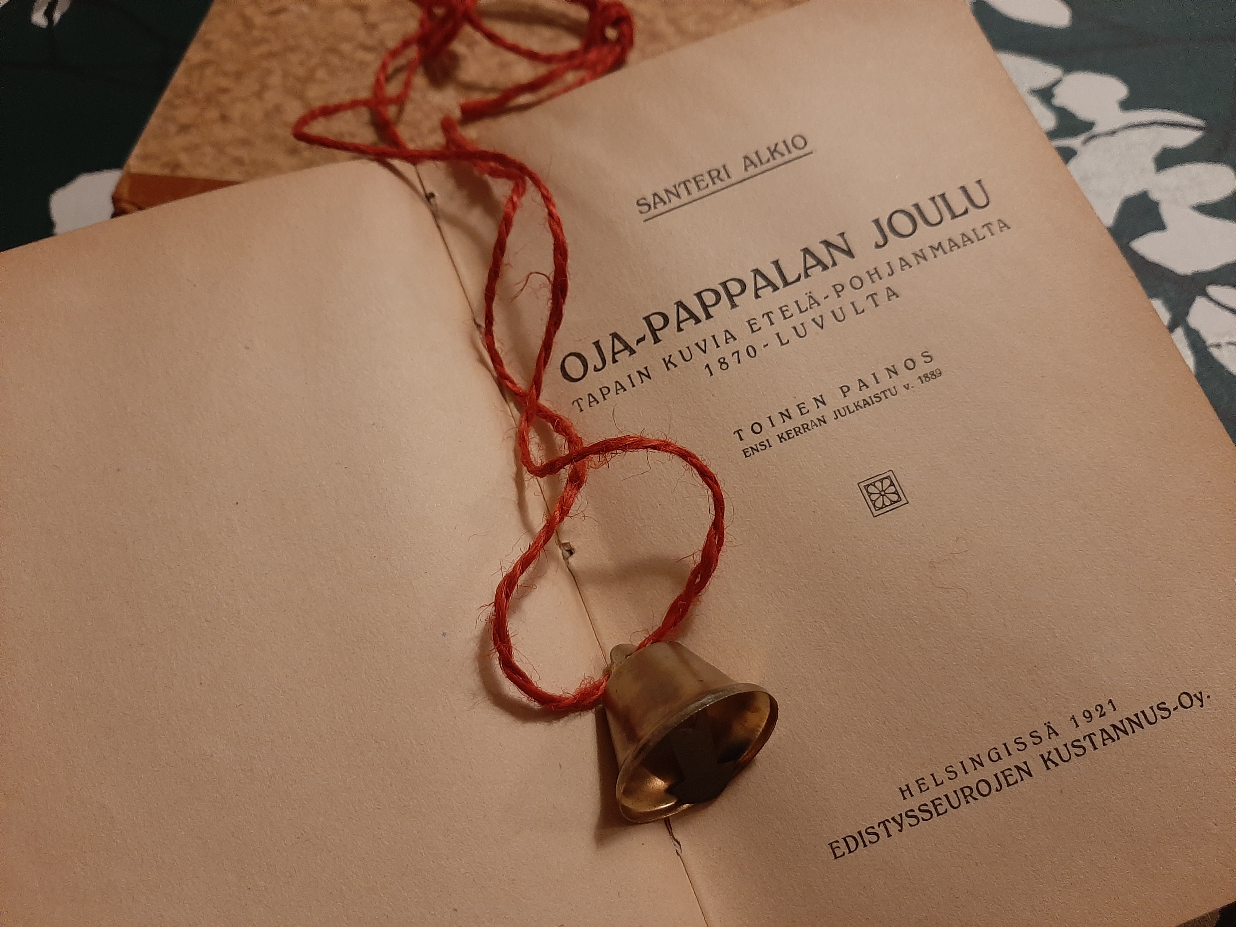 Santeri Alkion Oja-Pappalan joulu -teos on julkaistu vuonna 1889. Teksti löytyy myös Kootut teokset II -kokoelmasta (kuvassa) vuodelta 1921.